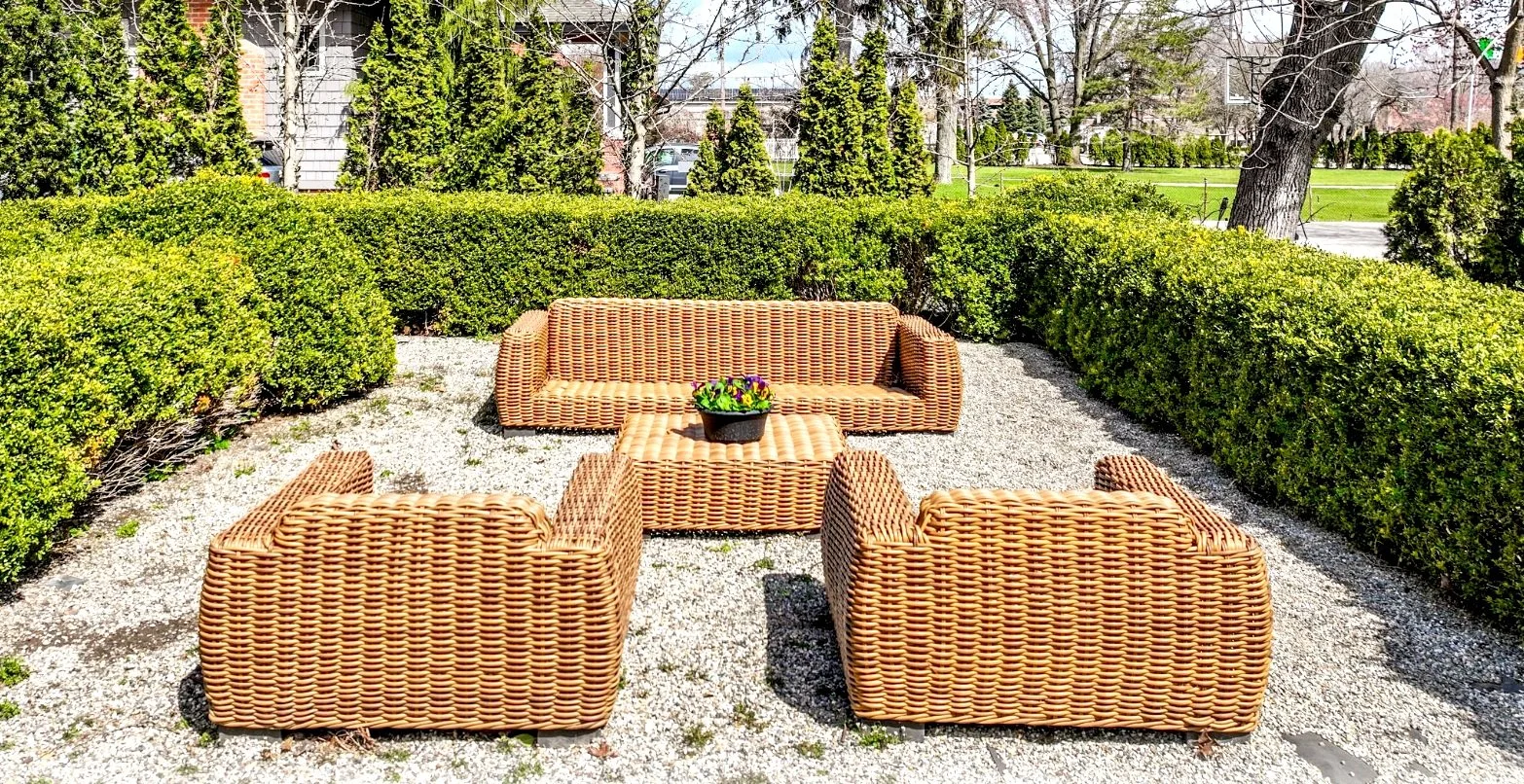 Four Piece Faux Wicker Set W/Ivory Cushions: $1,500
