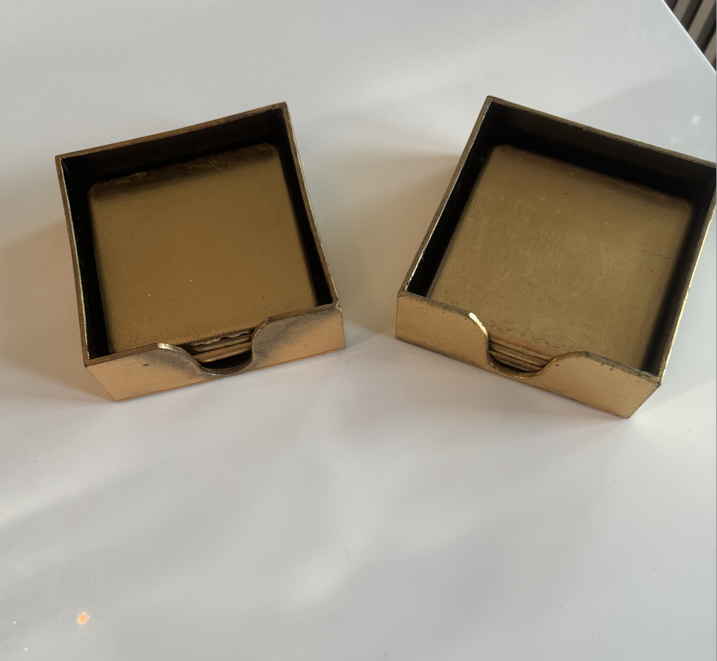 PENDING: Vintage Gold Two Drawer Chest: $200