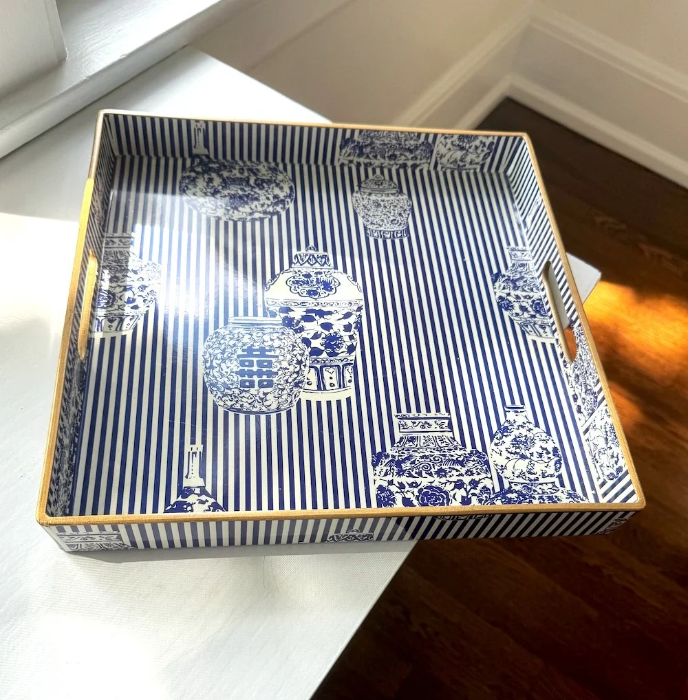 Navy/White With Gold Rimmed Pot: $25
